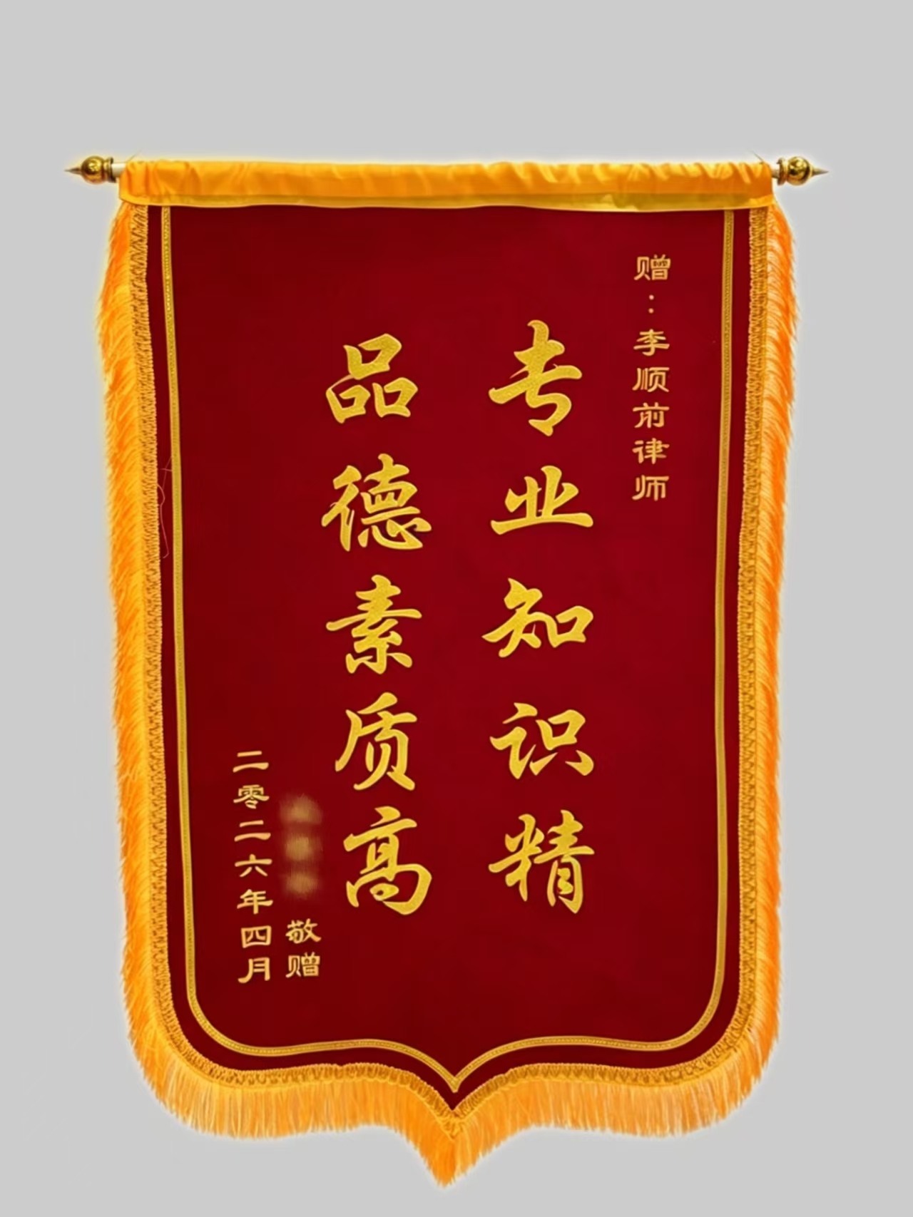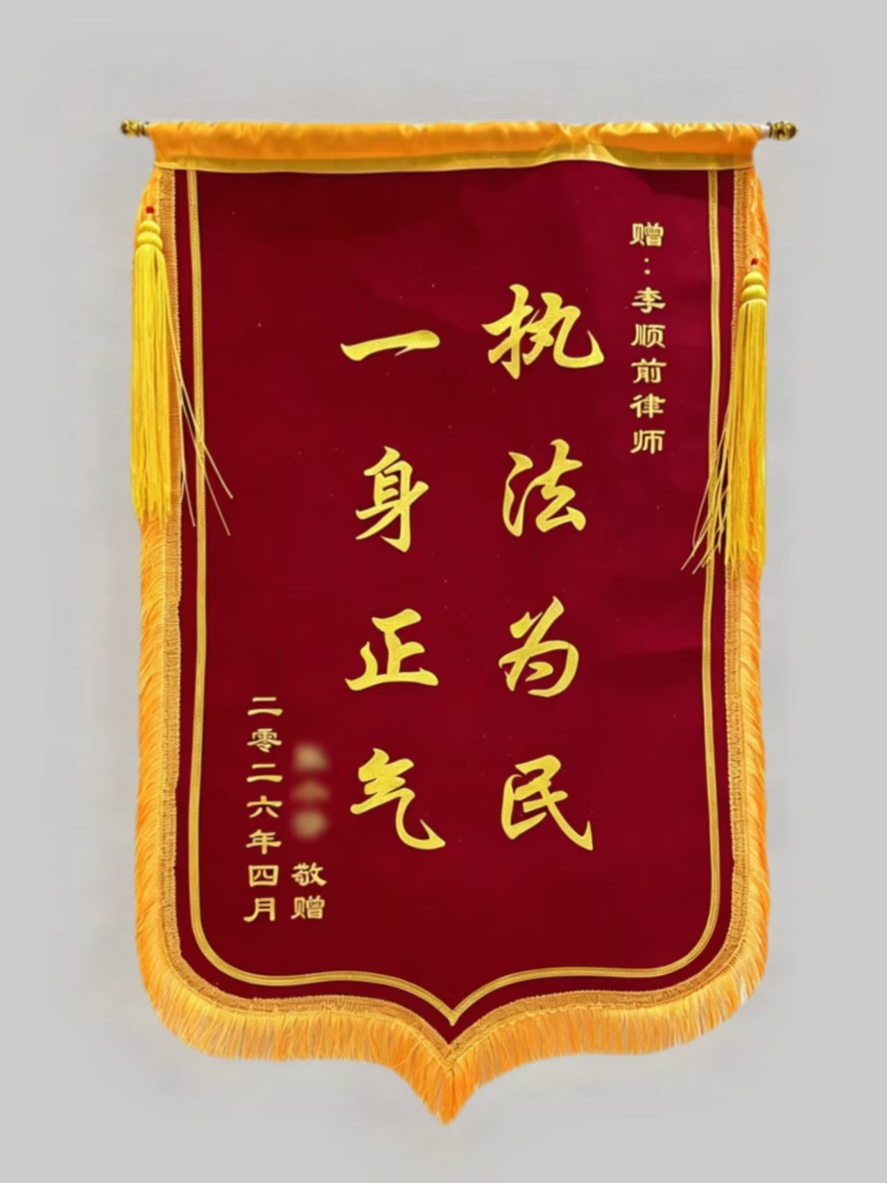 近日,北京市朝阳区法律援助中心指派的三起法律援助案件顺利办结。北京中阔律师事务所李顺前律师凭借专业尽责的服务,收获三位受援人分别赠送的锦旗,“专业知识精,品德素质高”、“法律卫士,两袖清风”、“执法为民,一身正气”,是对其办案能力、执业操守与法援成果的高度认可。
